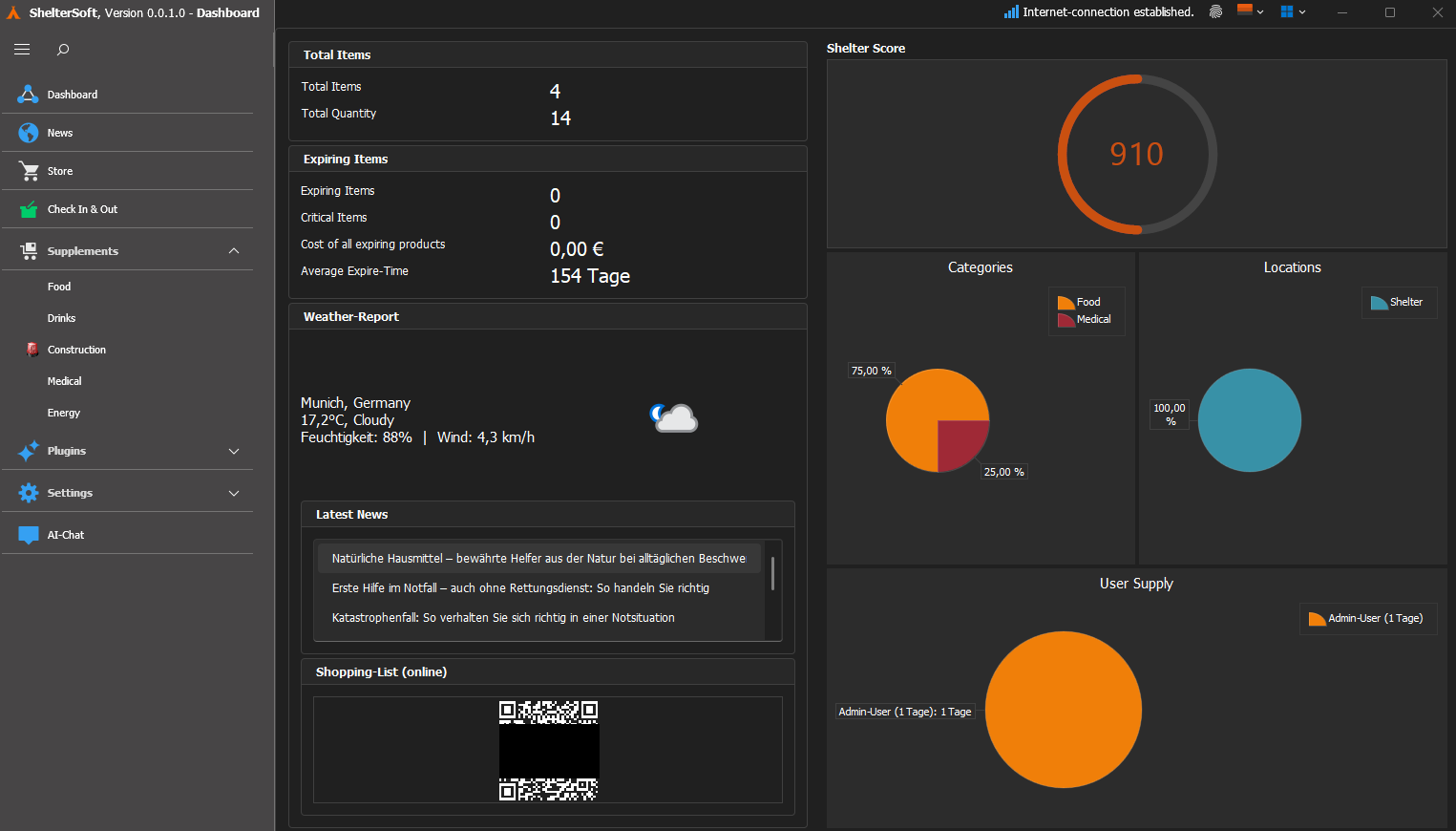 Sind Ihnen auch schonmal Ihre Lebensmittel abgelaufen, weil Sie sie vergessen haben? Dies kann Ihnen mit ShelterSoft nicht geschehen, da es Sie vor Ablauf der Lebensmittel warnt und bald ausgehende Produkte automatisch auf Ihre Einkaufsliste setzt.